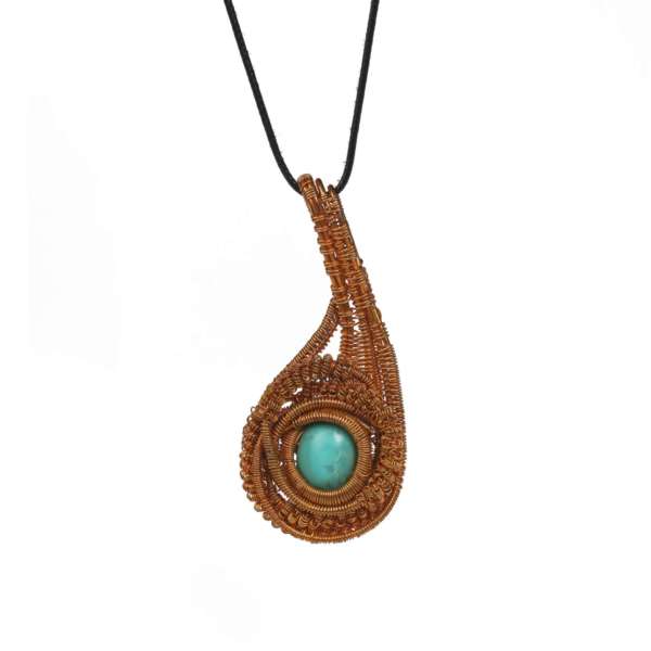 The Feroza gemstone is delicately wrapped in fine wirework, creating an intricate and unique design that enhances the stone‚Äôs natural elegance. Its soothing color is reminiscent of tranquil waters and is believed to bring calmness and positive energy to the wearer.<br data-mce-fragment=”1″><br data-mce-fragment=”1″>Whether you‚Äôre looking for a meaningful gift or a beautiful addition to your jewelry collection, our Feroza Wire Pendant is the perfect choice. It comes with a matching chain, allowing you to wear it comfortably and showcase its¬†timeless¬†charm.