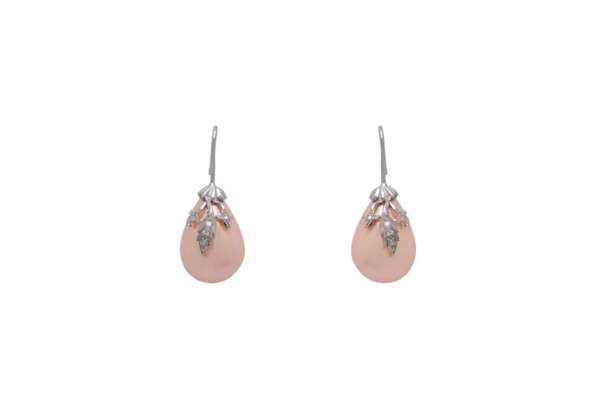 An adorable baby pink pearl hangs beneath a diamond-studded three-leaf vine. This brightly shimmering trio is capped off with a lovely shell-patterned dome, which leads back into a seamless hook. All you need to do is slip it through your ears… and voila! You’ve just become the prettiest girl in the room.