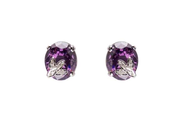 Well, these rich purple studs with resplendent 0.66ct diamonds are just perfect for you. When you see them, you’ll wonder: how could something so comfortable be so royal? But don’t forget the originality of the diamond-studded leaves coming around the purple stone, like shimmering hands supporting a crown.