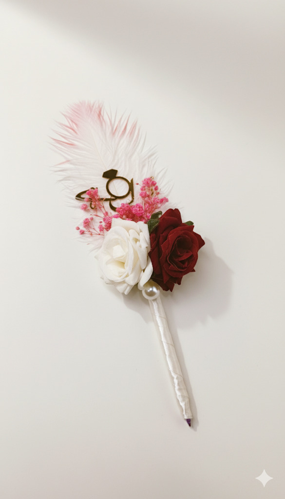 Handmade Luxury Pen – Adorned with Roses & Feathers, Perfect for Weddings, Events & Special Occasions.