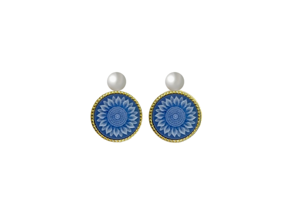 Inspired by nature’s most radiant bloom, the Pearl Petals earrings are a captivating fusion of carved  agate and freshwater pearls. The delicate sunflower carving in the agate reflects the beauty and  vibrancy of nature, while the soft, luminous freshwater pearls add a touch of elegance and sophistication. Set in an S925 silver body, these earrings are gold-plated for a luxurious finish that  complements the natural elements.