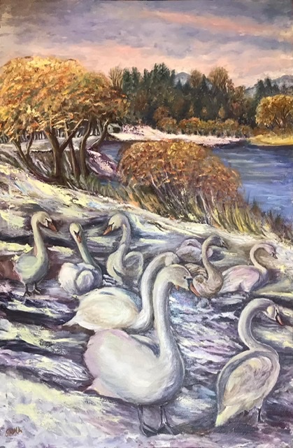 I used to love taking a walk on the riverside and watching these breathtaking peaceful, angel-like Swans gather peacefully enjoying the cold winter snow.