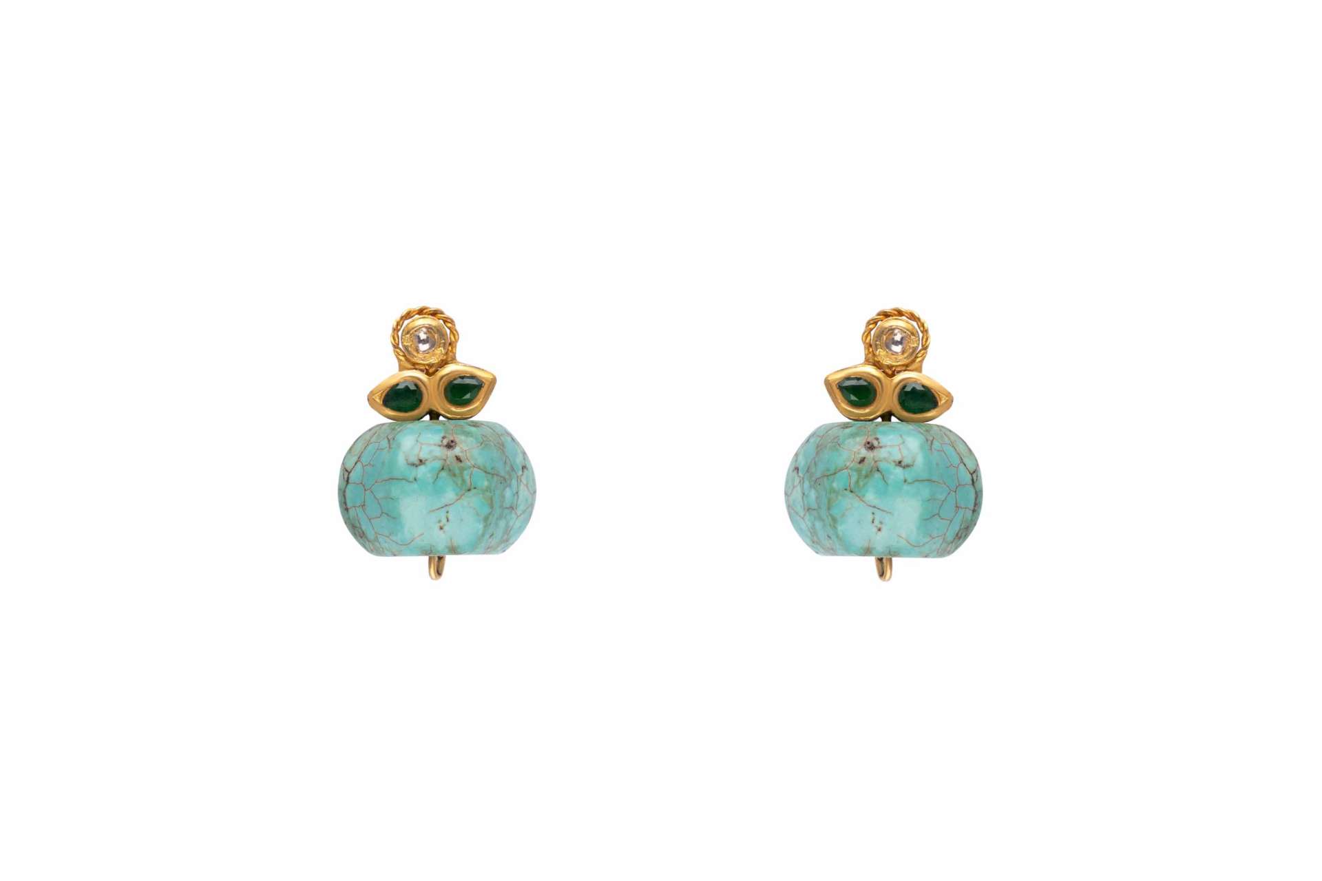 Enter a calming universe of blue with our mesmerizing turquoise and gold earrings.